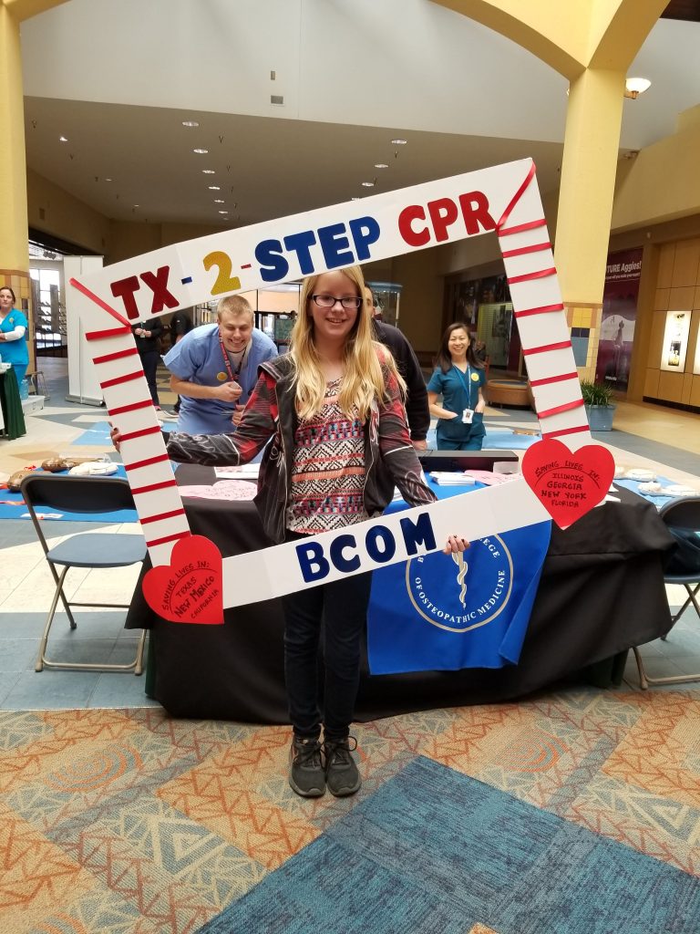 The BCOM chapter of the Sigma Sigma Phi (SSP) honorary osteopathic service fraternity participated in the 2018 National Texas Two Step CPR event. The annual event aims to educate the public on the benefits of compressions-only (aka hands-only) CPR. The program started in 2015 as a grassroots event organized by Texas medical students hoping to teach the technique to as many people as possible. By 2017, the event had grown to include 14 cities and all medical schools in Texas. For this year’s event, they expanded to include six additional states, with the BCOM students representing New Mexico.