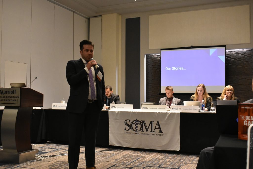 He will also serve on the Board of Trustees and as an ex-officio member of the SOMA House of Delegates. He said, “My specific goals this year are to increase our accountability to our membership. I hope to ensure that we are acting on the desires of our House of Delegates, which represents 15,000+ osteopathic medical students across the country. Additionally, I hope to encourage more collaboration between the various director positions. For instance, the osteopathic principles and practice director can work synergistically with the public relations director to increase awareness of what osteopathic medicine is, and how our approach represents the best response to the needs of our patients.”
