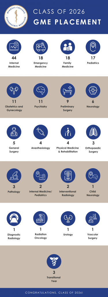 LAS CRUCES, NM – The Burrell College of Osteopathic Medicine celebrated 165 student physicians who matched into residencies across a wide range of medical specialties on Match Day, March 20, 2026.