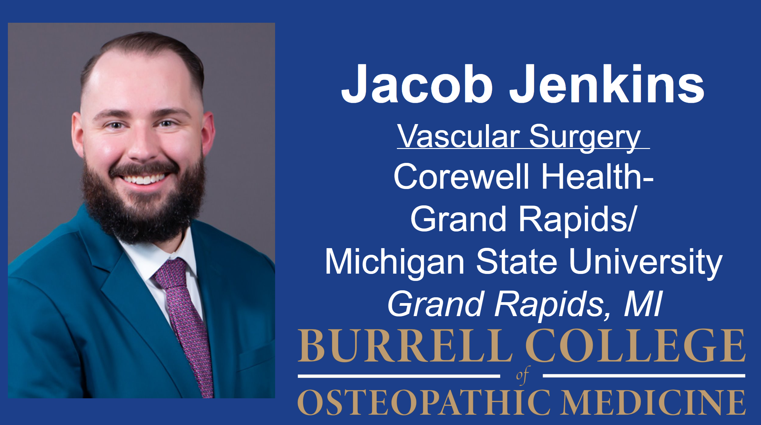Jacob Jenkins matched in Vascular Surgery at Corewell Health-Grand Rapids/Michigan State University in Grand Rapids, Michigan, highlighting the continued strength and competitiveness of Burrell College students.