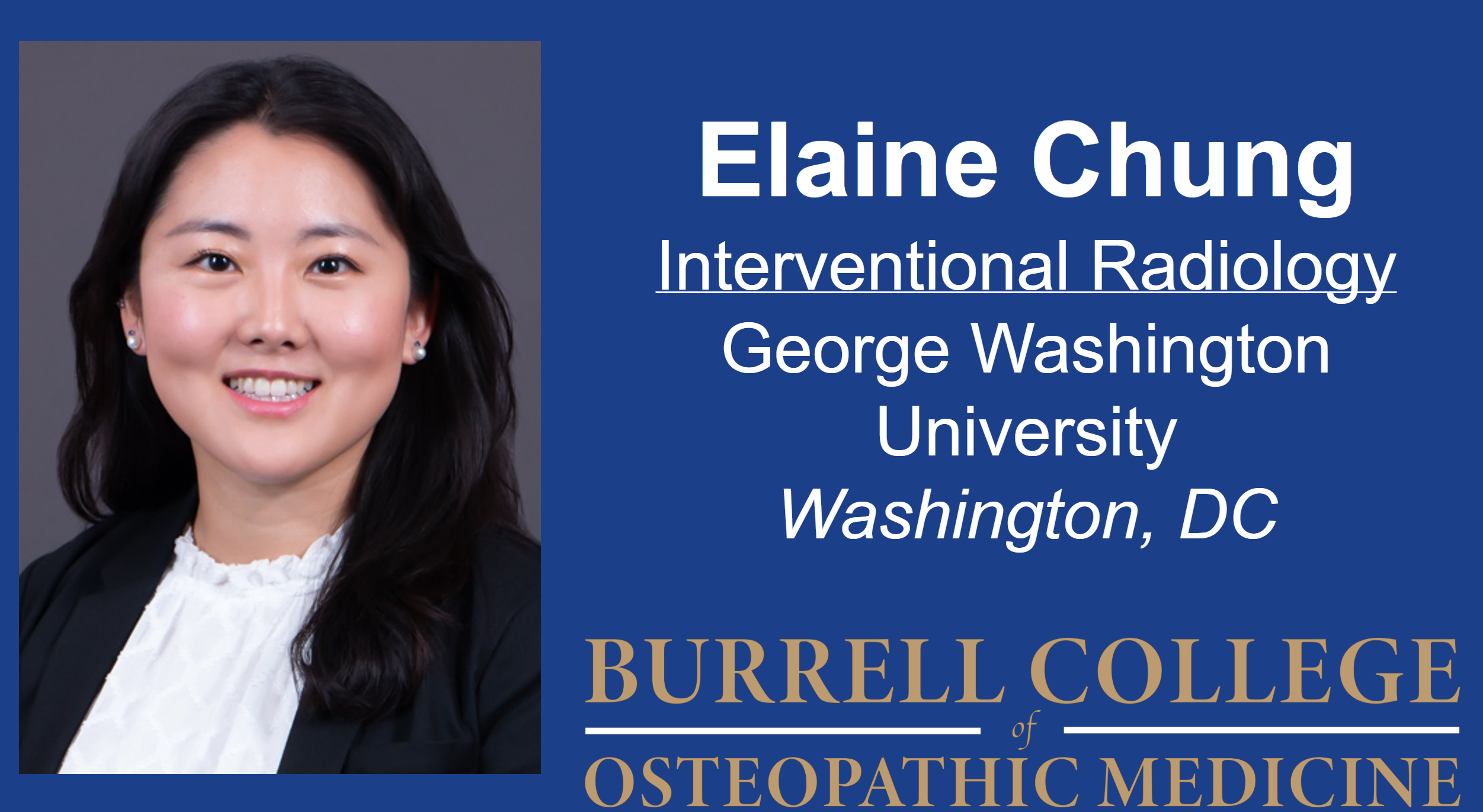 Elaine Chung matched Interventional Radiology at George Washington University, Washington, DC. Chung is motivated by a strong sense of purpose and commitment to advocating for her patients.